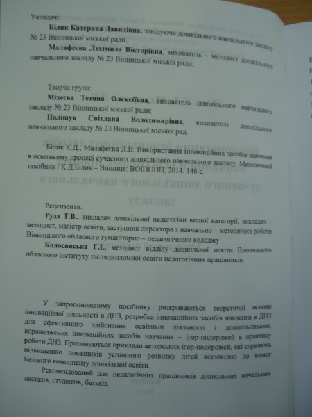 Автори: Білик Катерина Давидівна - завідуюча ДНЗ №23, Малафеєва Людмила Вікторівна – вихователь-методист ДНЗ №23, Міхєєва Тетяна Олексіївна, Поліщук Світлана Володимирівна – вихователі групи №3 ДНЗ №23.
